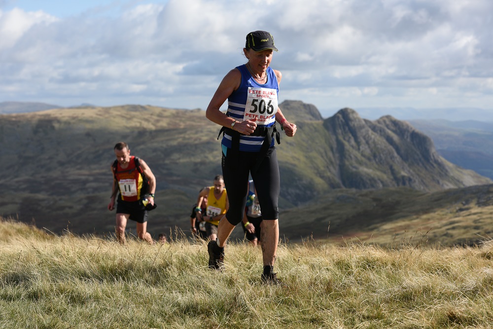 The Langdale Horseshoe was the final race of the English Fell Championship series (6 races, 2 each Long, Medium & Short – best four to count including one of each length). A number of Bingley runners needed good results to secure their final championship places. Before the day Vic Wilkinson was second lady, competing with Nichola Jackson (Preston), Lou Roberts (Ambleside) and Sharon Taylor (Helm Hill), and she had missed the other Long, Borrowdale, as she was on GB team duty. Ian Holmes looked like he had the V50 top spot in the bag but was tusselling with Karl Gray (Calder) for the V45 one too. Becky Weight was in top V55 spot but could still be overtaken by last year’s winner Wendy Dodds (now a V65!). All needed good clear runs on the day to beat close competition. Lesley Watson and Denise Wright were there for the Bingley Ladies team, and Tom Gomersal, Dave Stephenson and Andy Jebb were amongst the 388 on the start line near the Old Dungeon Ghyll Hotel with various partners, children, campervans, and other family in support. Lesley hadn’t managed a recce but, with a race entry in her pocket and a race series to finish, it was too tempting not to run. It was a bright, sunny, still day with Langdale in its full early Autumn glory. Perfect weather for running, although pretty wet underfoot in places from a mixed weather summer and rain in the previous week. The photos can tell more of the story :